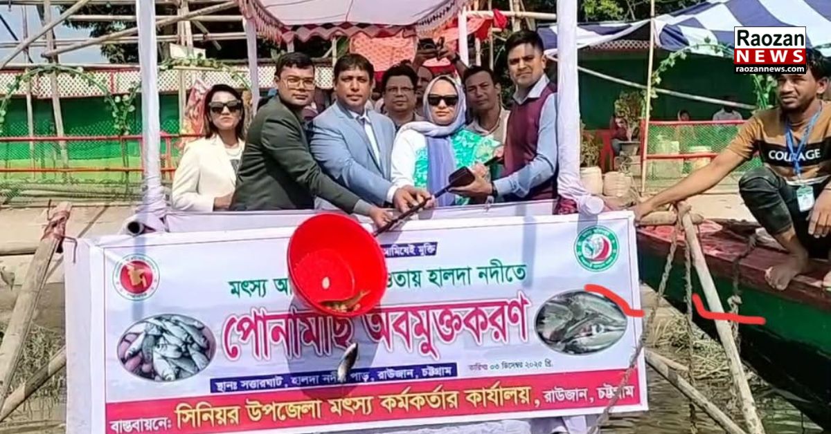 হালদা নদীতে ৭৫০ কেজি মাছের পোনা অবমুক্তঃ দেশের একমাত্র প্রাকৃতিক মৎস্য প্রজনন ক্ষেত্র হালদা নদীতে ৭৫০ কেজি বিভিন্ন প্রজাতির মাছের পোনা অবমুক্ত করা হয়েছে। মৎস্য অধিদপ্তরের উদ্যোগে এবং রাউজান উপজেলা সিনিয়র মৎস্য অফিসারের কার্যালয়ের আয়োজনে এই কার্যক্রম পরিচালিত হয়।